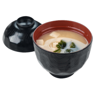 Tradicional brou japonès amb miso, tofu, alga wakame i ceba...